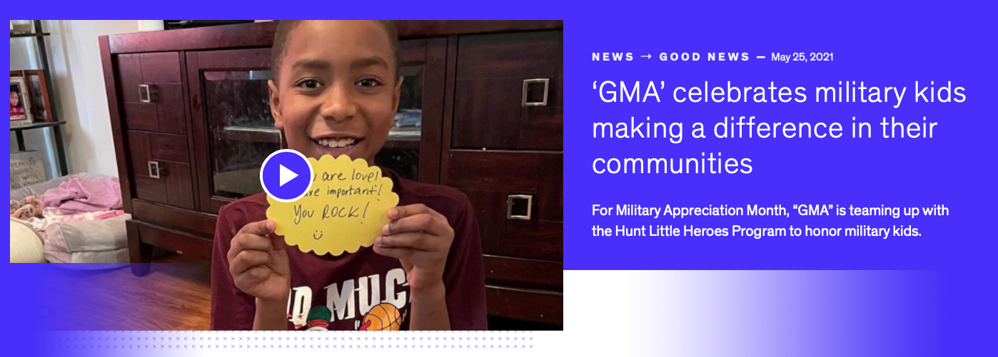 “We are so honored to celebrate the outstanding accomplishments of military children across our country,” said John Ehle, President of Hunt Military Communities and the Hunt Heroes Foundation. “During such a difficult time, we value this opportunity to recognize the special contributions of military children who are giving back to their communities.”